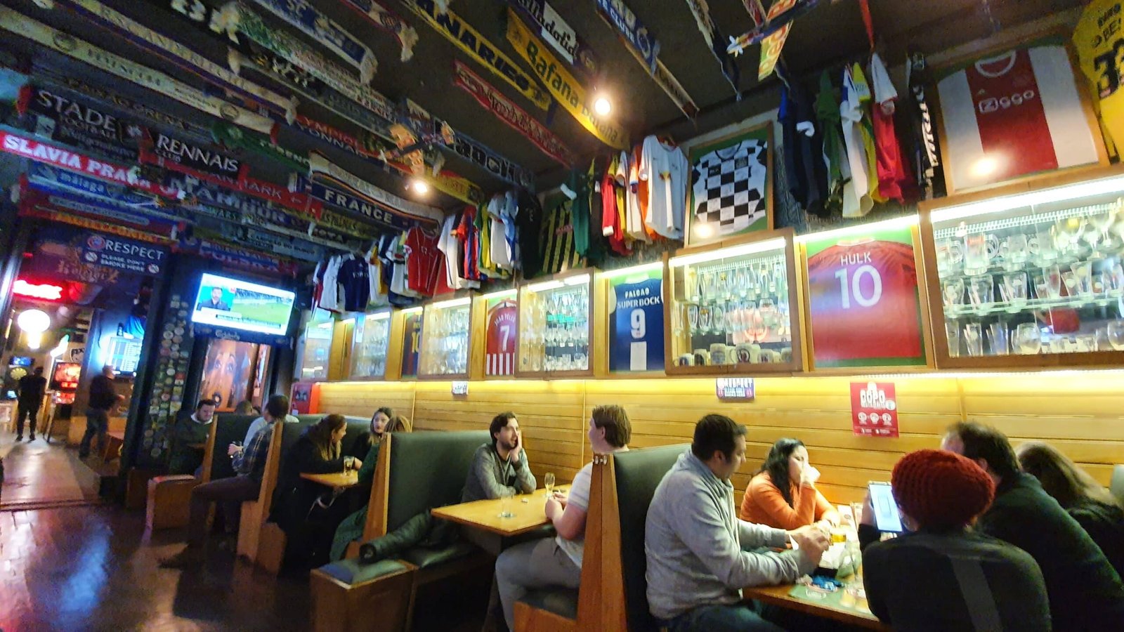 Drinks include Belgian, British and global beers – is this the world’s only sports bar to serve port? Burgers and sandwiches are also served by a staff at pains to make international visitors feel at home.